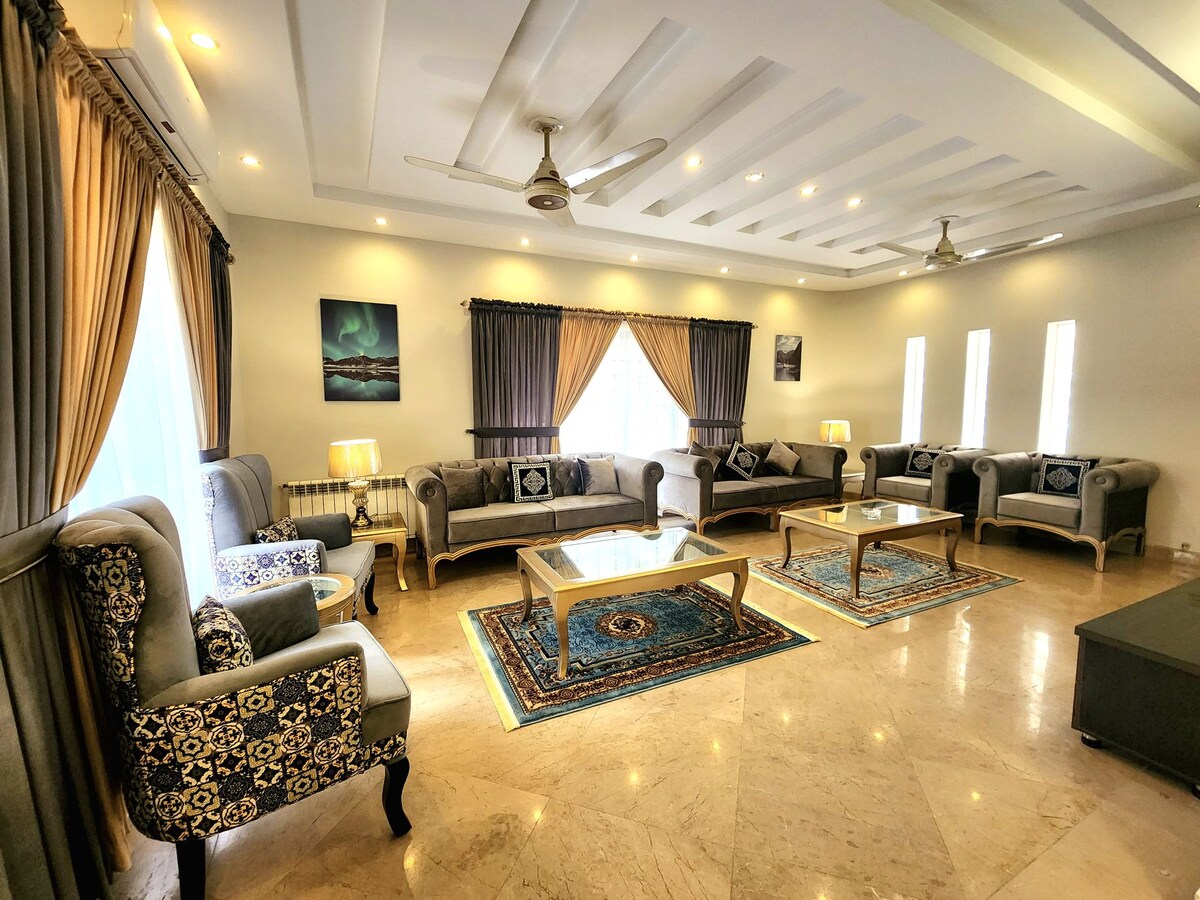 這是1.5 Kanal 4臥室獨立地面部分,配有Servant Quarter...非常適合大家庭,這是Park Face House小兒童公園就在這棟房子的前面。 步行即可抵達清真寺、商業商店,房子有大車庫,最多可容納3個停車位... 整個部分安裝了7臺空調,如臥室、客廳、餐廳等。 入住這個寧靜的房源,與全家人一起放鬆身心。 注意:此房源僅適合家庭入住