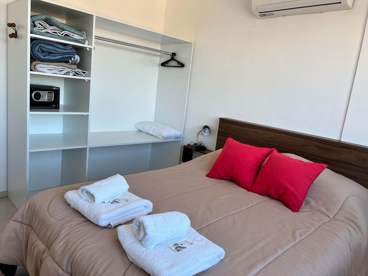 Departamento en planta alta mediante escaleras totalmente equipado para que en tu viaje vacacional o laboral no tengas que preocuparte por nada. Súper cómodo y luminoso. Ideal para cuatro personas, cama doble y dos camas simples. Se encuentro en pleno centro, a metros del Bar Antares.