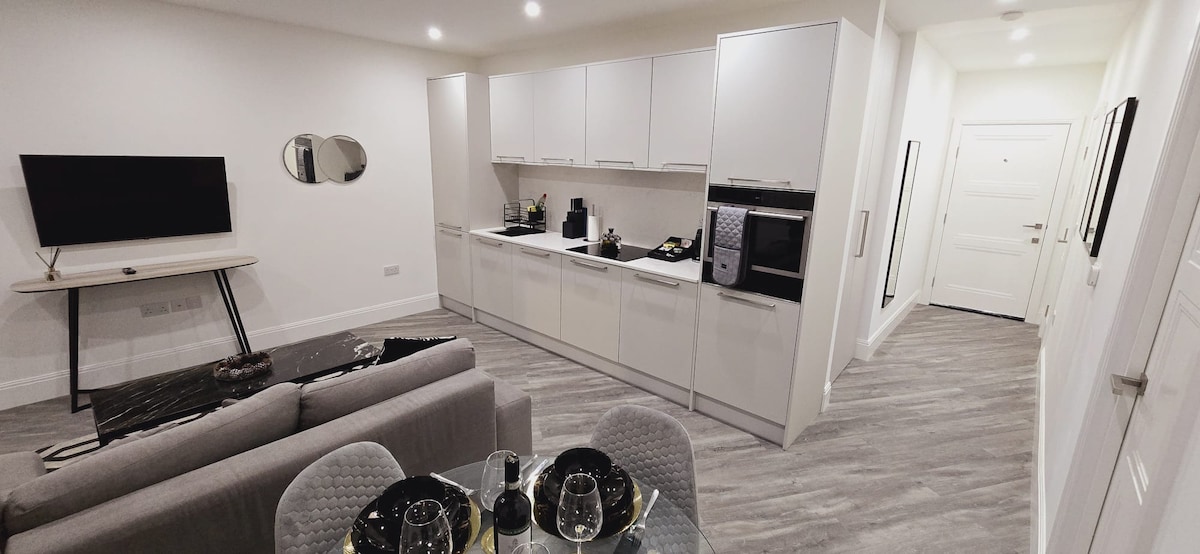 Discover your stylish home in central Reading! This brand-new one-bedroom apartment is perfect for couples, families, or business travelers. Features an open-plan living area with a sofa bed, a fully equipped kitchen, and a flexible king or twin bedroom setup. Located just a stroll from The Oracle Shopping Centre, it's the ideal base for exploring the city. Comfortably accommodates up to 4 guests.