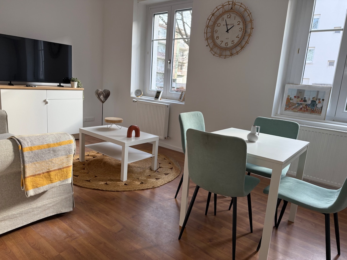 這間全面翻修的57平方公寓距離Mulhouse Ville火車站僅5分鐘步行路程,靠近許多優質食品店,可快速前往市中心、商店、博物館和景點。 非常適合家庭住宿、與好友一起旅行或商務旅行。 靠近附近的火車站,輕鬆探索阿爾薩斯的聖誕市場。 現代舒適,是成功入住Mulhouse的完美位置。