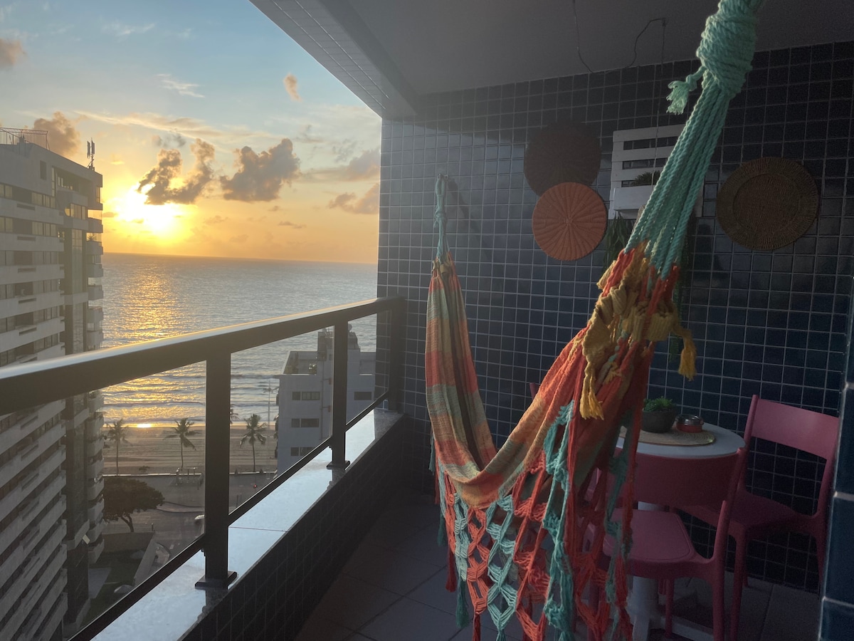 面向大海的單間公寓,距離機場、舊雷西菲和會議中心15分鐘。 位於Boa Viagem海灘最受歡迎和安全的地方的舊式傳統建築,地面設有Seu Tito餐廳、Alphaiate酒吧和Borsoi咖啡廳,附近有24小時便利店和Assaí超市。 非常適合實用和活躍的人,內部結構良好,配備廚房、Wi-Fi、大床、冷氣和良好的淋浴間。 第三位旅人可在舒適的床墊上短期住宿。
