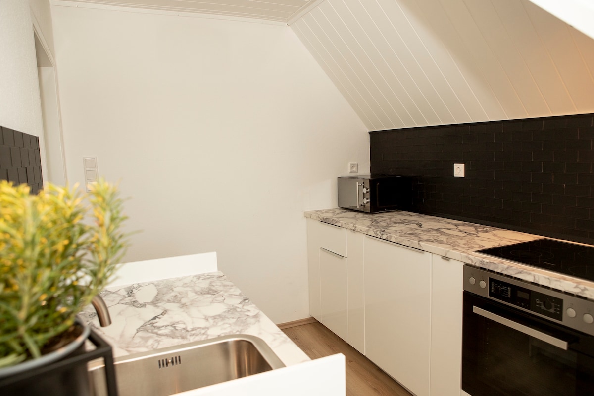 歡迎來到Marl –您的舒適臨時房源! 我們精心裝潢的閣樓公寓讓您感到舒適。 設備齊全,配備舒適住宿所需的一切設備,無論是短途旅行還是長期住宿,都能提供理想的度假勝地。 公寓很安靜,但位於市中心:附近有一個小城市公園,邀請您放鬆散步。 -歡迎來到Marl -
