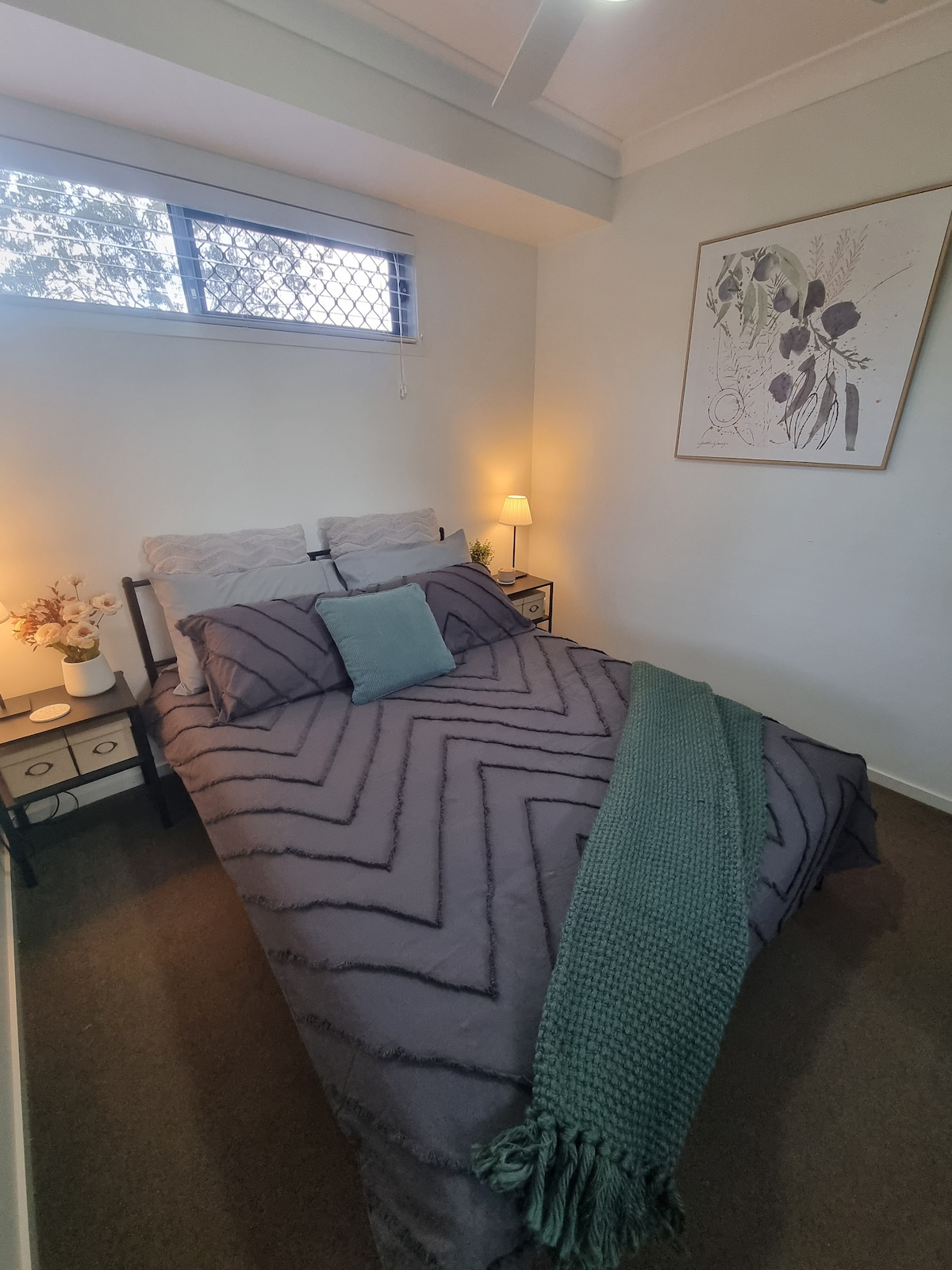 入住這間寧靜時尚的客房,放鬆身心。 通過無台階前門進入,或通過私人庭院偷偷進入現代鎮屋的獨立角落。 靠近火車、巴士、商店和餐廳,步行即可抵達公園和海灣海灘。 雙人床尺寸的「Murphy床」在白天可兼作書桌,即使床放下,書桌也會保持水平,因此您甚至不需要收起筆記本電腦!