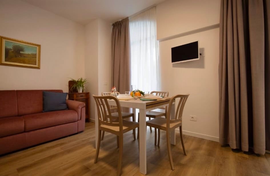 Alma Bergamo 是一個位於市中心的兩居室公寓,步行 5 分鐘即可抵達火車站和巴士站,前往附近的景點和城市也很方便。 它位於一棟安靜且精心翻新的公寓的三樓(有電梯),並有地下車庫。 它由廚房和客廳組成,根據要求,我們會準備帶有記憶床墊(140*190厘米)的沙發床、雙人臥室和帶淋浴間的浴室。房間和客廳均配有大金空調。