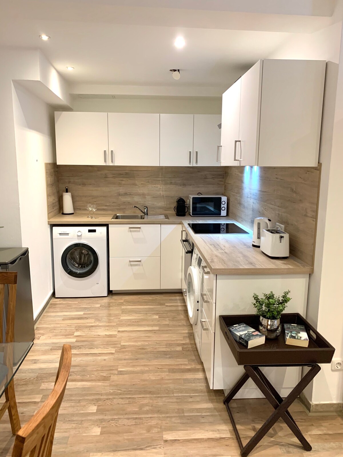 Gesamtwohnfläche 25 qm zentrale Lage Der Wohnbereich beinhaltet eine Küchenzeile mit Dunstabzug ins Freie, einen Esstisch, einen Arbeitsplatz am Fenster sowie ein Bett mit einer Breite von 1,20 m (Länge 2 m). Das Bad ist mit einer ebenerdigen Dusche ausgestattet (keine Waschmaschine integriert). Das Parkhaus am Dachauplatz ist in unmittelbarer Nähe. Weiter Stellplätze für Autos sind entlang der Straßen (kostenpflichtig). WLAN ist verfügbar.