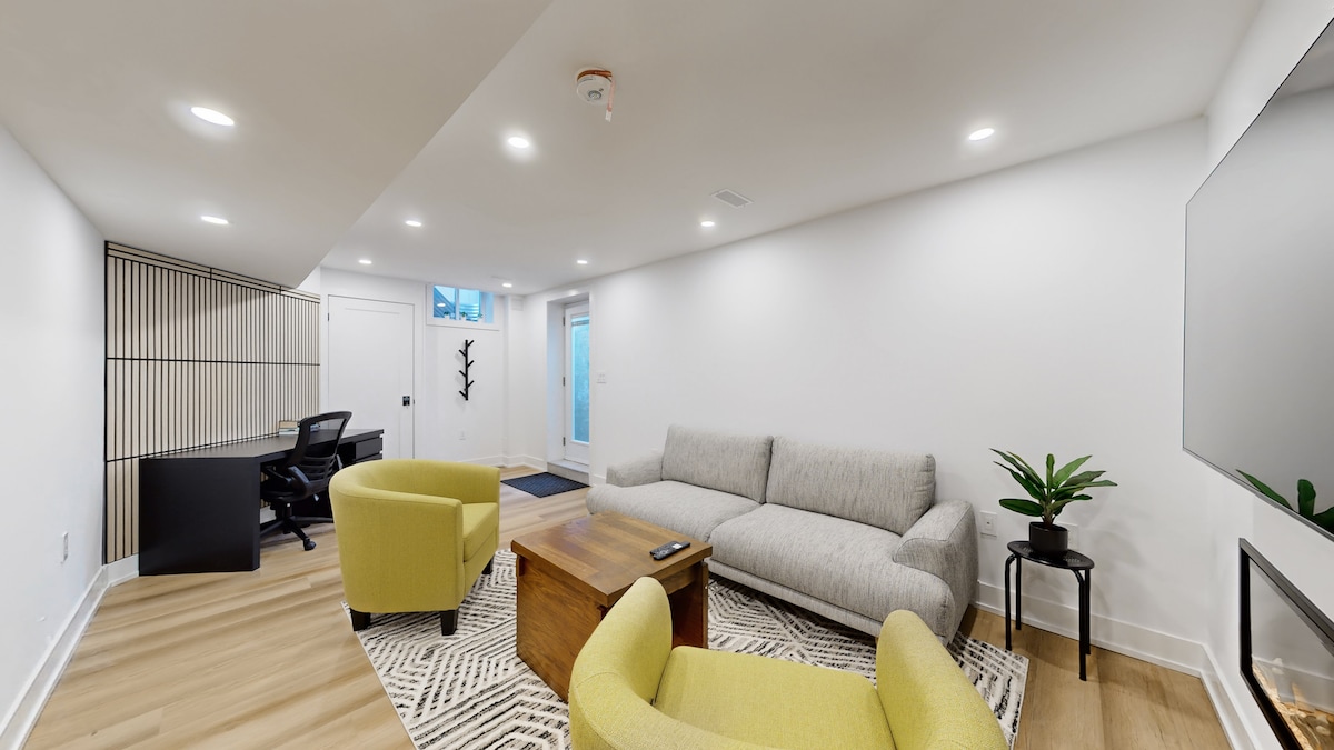 這間現代化的套房舒適而溫馨,位於安靜、適合家庭入住的Ajax社區。 距離Thermea Spa和Ajax GO Station僅10分鐘,步行即可抵達公園、商店和雜貨店。 新建的1,000平方英尺空間,配備豪華裝飾,包括地暖、電壁爐、寬敞的沙發和配備Netflix/Prime的智能電視。 多倫多市中心車程35–45分鐘,皮爾遜機場或密西沙加約55分鐘。
