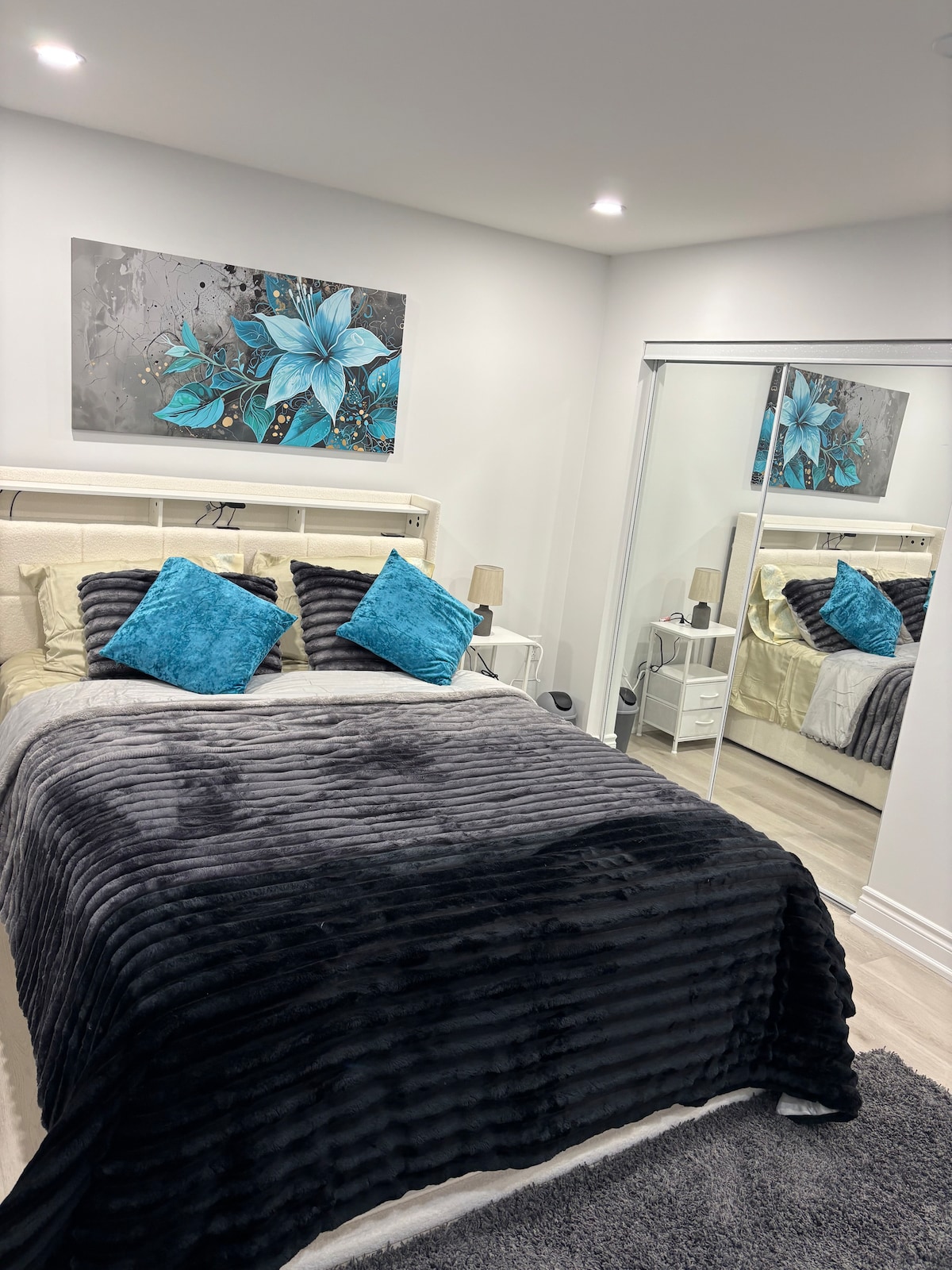 1 Bedroom • 1.5 Bathrooms • Private Entire Unit Newly renovated and quiet, just minutes from Hwy 401 and local restaurants. Highlights • Private self check-in • Driveway parking for 1 car • Private sauna • 55 Inch TV with Netflix Amenities Fresh towels, linens, tooth brushes & pastes, hairdryer, home essentials, shower essentials, and extra pillows/towels on request. Spotless home, quick replies, and your comfort guaranteed - book with confidence.