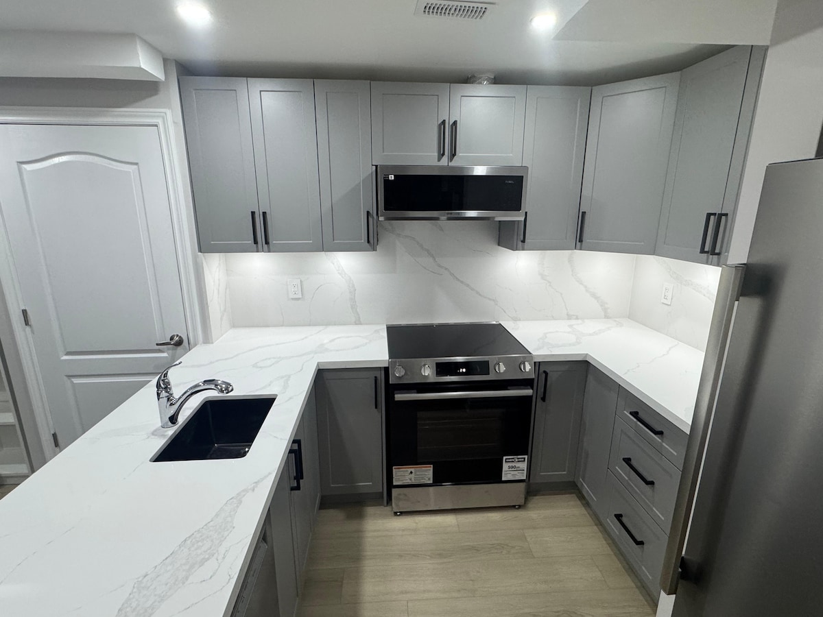 您可以獨自使用整層樓。新裝修,配備現代化設備與服務,包括55吋智慧OLED電視、光纖高速WiFi和後院,為情侶和家庭提供充滿樂趣的活動。 靠近公共交通工具,步行即可抵達TTC Eglinton W站。位於市中心,可快速前往市中心或任何鄰近城市(Vaughan、Markham、Brampton、Mississauga)。位於安靜的街道上,步行即可抵達雜貨店、藥店、咖啡廳和餐廳。