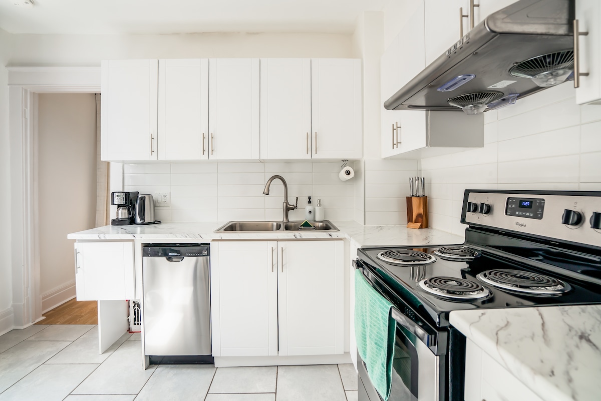 About a 5 to 10 minute drive or 20 to 30 minute walk from the bustling tourist district, this cozy one bedroom suite is a calm base after a day visiting Niagara Falls. Relax in the living room with 55 inch smart TV, enjoy 1.5 Gbps Bell fiber Wi-Fi, cook home made meals in the functional kitchen, and sleep well in your private bedroom. Free parking and outdoor cameras add peace of mind. Ideal for Individual, remote workers and couples seeking a serene escape with the Falls just a heartbeat away.