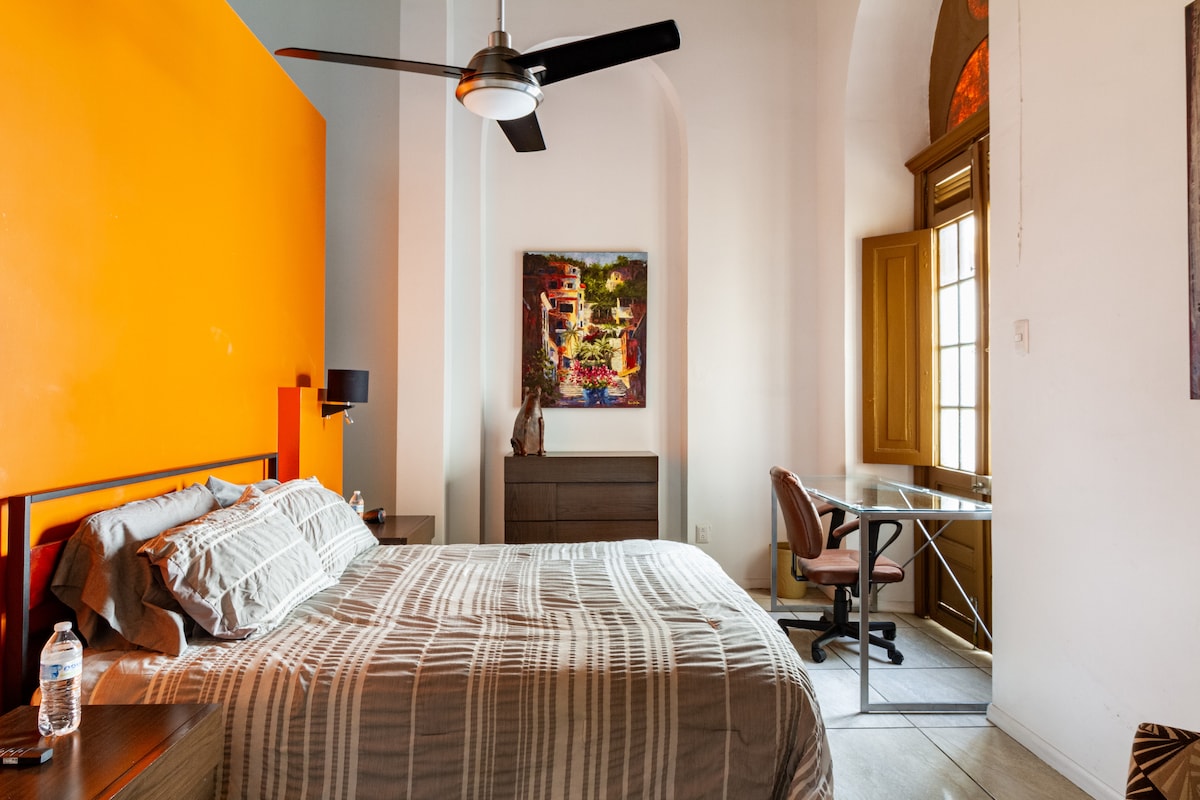 入住瓜達拉哈拉歷史中心(Guadalajara Centro Historico)一座百年歷史的祖傳房屋。最近的行政公寓非常適合長期住宿。距離行動中心四個街區。第15屆年度保存和修復Patrimonial valor建築獎得主。 我們使用綠色能源。三個120mb Wi-Fi服務。