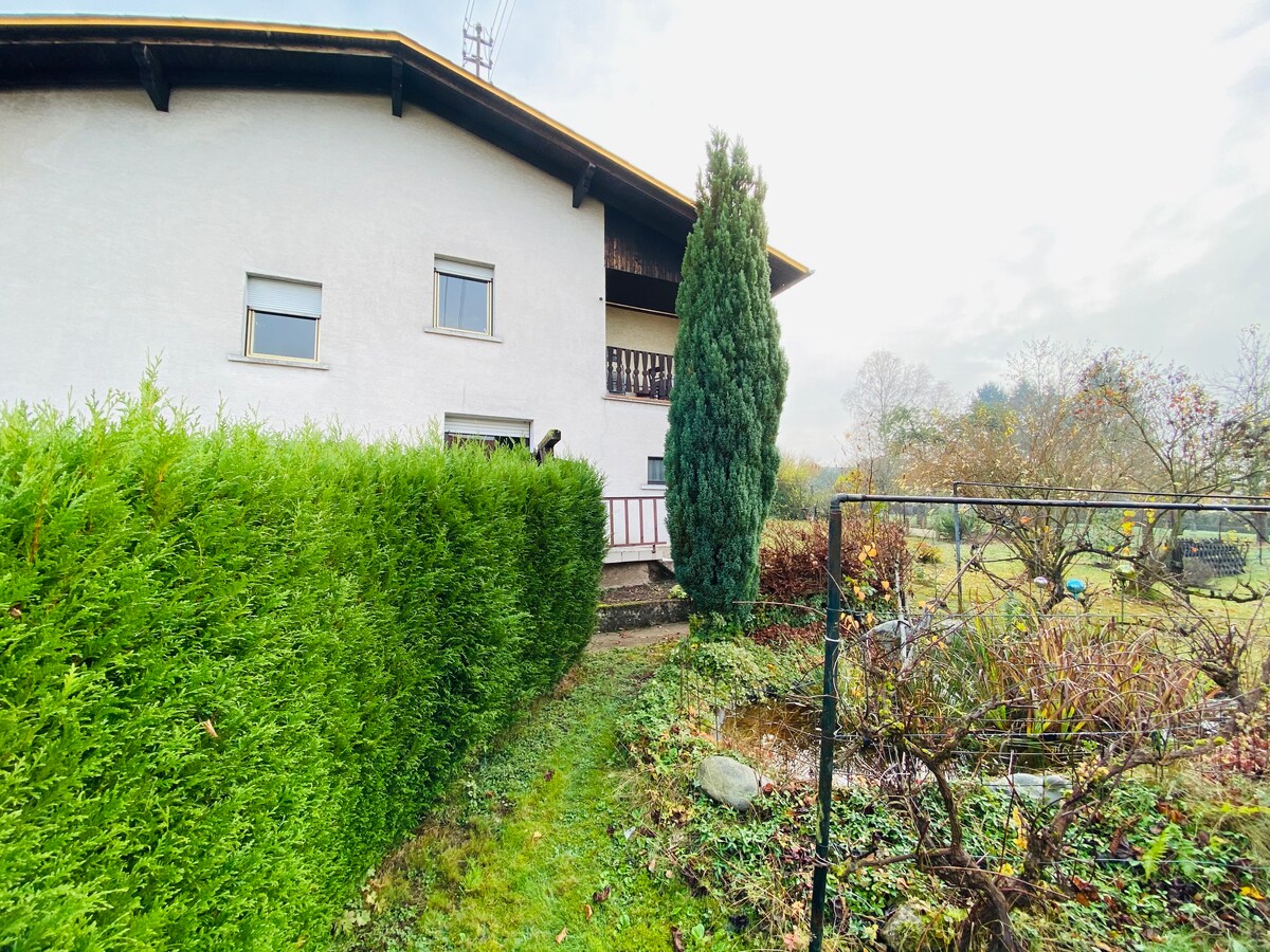 獨自或與他人共享的寧靜綠洲。一個小單間公寓,位於森林邊緣的房子裡 - 20公尺,在邊界後面,開車2分鐘即可到達薩爾布呂肯。該單間公寓最初是作為工作室使用的。它有一個獨立的入口區域,配有衣櫃和衣櫃。客廳有一張雙人床、一個小廚房、一張大桌子和兩張閱讀椅。浴室配有淋浴。景觀寬闊。花園邀請您逗留。