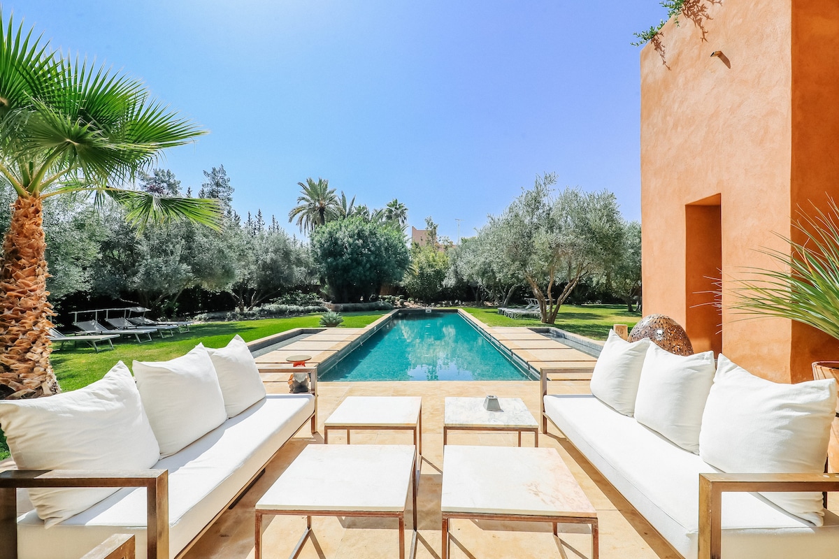 Villa in the olive groves, Bab Atlas. 5 bedrooms, 10 guests, 20m pool, private hammam and sauna. Breakfast included every morning. Housekeeper, concierge, chef on request. Medina 20 min. The kind of place you don't leave until you have to.