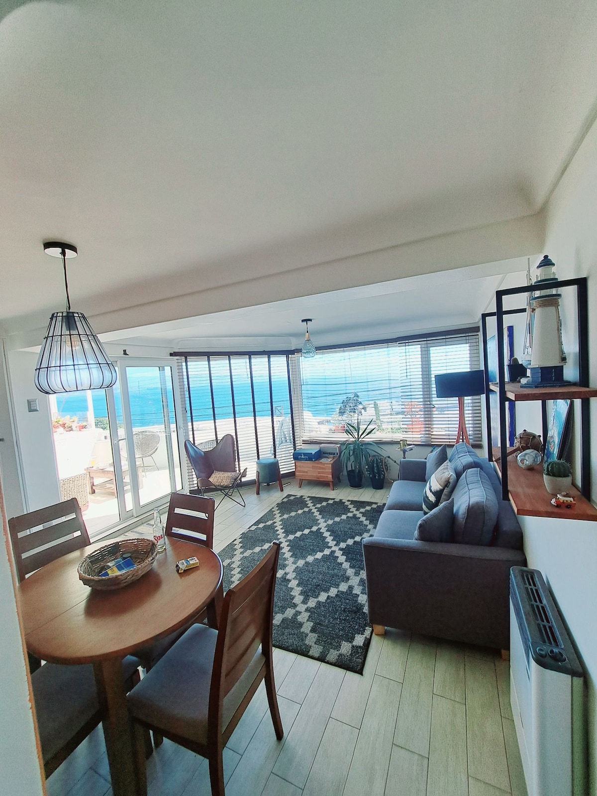 Lindo departamento con preciosa decoración. Totalmente equipado para 4 personas . Primerísima línea, vista libre, espectacular e inmejorable a Valparaíso, se encuentra a 15 min caminando de la playa Cochoa (hay que bajar una escalera). Está a pasos de Supermercado Lider y Jumbo.Incluye 1 Estacionamiento privado subterráneo. Excelente conectividad y transporte público a una cuadra. **NO ESTÁ EN EL SOCAVÓN ** DEPTO SOLO PUBLICADO EN AIRBNB No redes sociales ni otras plataformas.
