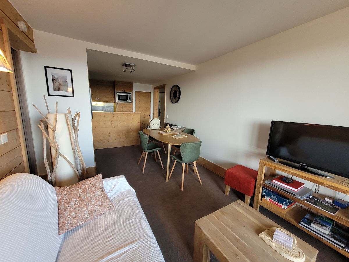 美麗的景觀!45平方米的小披肩,配有14平方米的漂亮私人露台,陽光明媚,位於自然空間的中心。 地理位置優越的住宿,步行5/10分鐘即可到達村中心和滑雪纜車、商店、泳池、溜冰場、運動公園、巴士站(200米)。 大玻璃窗、設備齊全的廚房、2間臥室、沙發床休息室、浴室和廁所、1個停車位。 可選擇預訂付費租用床單(毛巾床單)。