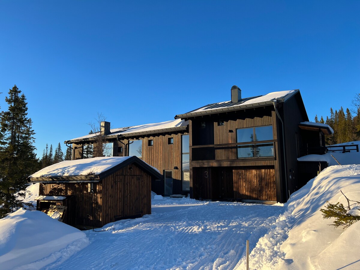 新建房屋,配有客用公寓,選用優質材料,裝潢高雅且功能齊全。雪地摩托車、滑雪和徒步道就在門外,可帶您前往滑雪場。南部奧勒山脈的神奇景觀,臥室外有美麗的越橘灌木叢,配有雙人床,可俯瞰倫恩山頂。 公寓有自己的入口、小露臺和朝南的長窄陽臺。閣樓上有一間帶雙人床的臥室,以及一個帶床和舒適起居區的獨立區域。私人滑雪儲物室。