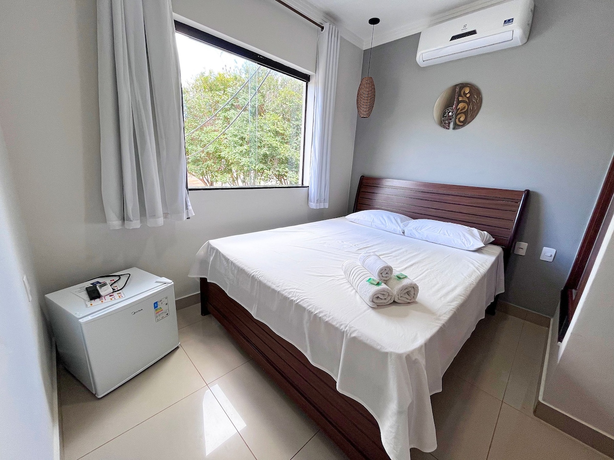 很棒的套房,位於Bela Vista街區,靠近運動場,有球場、健身中心和遊樂場。 家具和設備齊全的空間,非常適合情侶和有小孩的家庭。 對於想在漫長的一天參觀Lake Furnas之旅後想拯救和休息的人來說,這是正確的選擇。 距離國會大廈市中心不到1公裏,距離Escarpas do Lago 6公裏,距離Turvo Bridge 22公裏,距離Canyons de Furnas 29公裏。