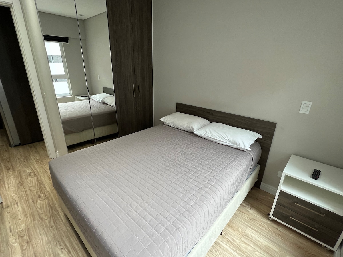 Seja bem vindo(a). estamos localizados em frente do shopping Curitiba, Excelente localização próximo de tudo, bares, restaurantes, pontos turísticos entre outros. Ideal para você que vem a passeio ou trabalho. Pensando em seu conforto temos, Cama Queen, TV Smart, , wifi , ar condicionado, cozinha completa, e estacionamento incluso. O prédio possui piscina aquecida( apresentar atestado médico), sauna, academia, brinquedoteca. Temos mercadinho e cafeteria dentro do condomínio. Esperamos vocês!