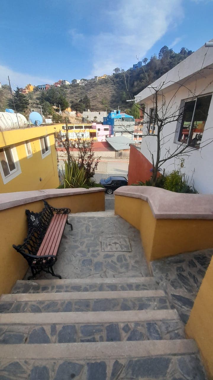 Bonito departamento en el centro del pueblo mágico de San Joaquín, cuenta con una terraza con una vista increible al centro de colorido pueblo. A sólo 5 min caminando del centro. A 10 min caminando de la central de autobuses. Se pueden visitar bastantes lugares a pie sin necesidad de coche.