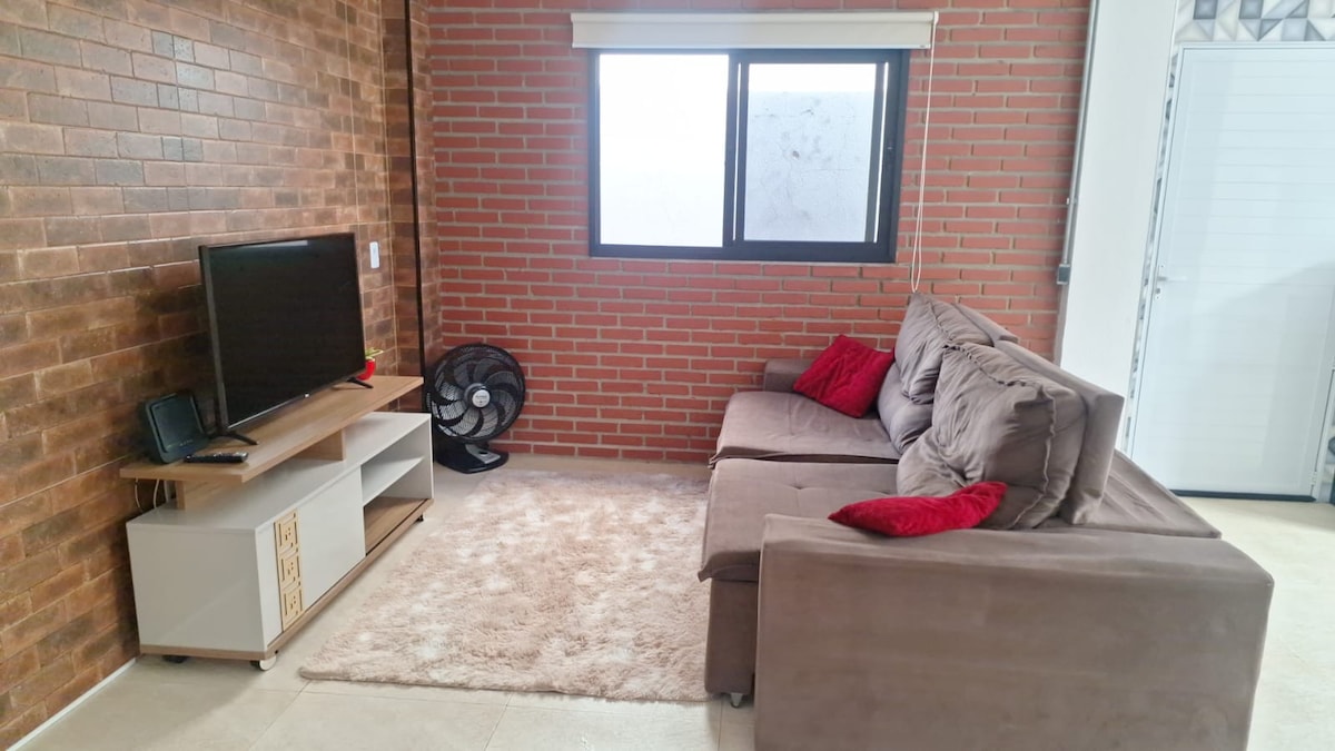在新村莊迪亞伊諾波利斯的這間舒適住宿放鬆身心。配備VIVO FIBRA網路、智慧電視。新翻修的空間,配備新家電,靠近巴士站,可輕鬆前往安漢格拉公路 (Rodovia Anhanguera),距離容迪亞伊市中心 5 分鐘,距離 Hopi Hari、Wet'n Wild 和 Outlet Premium 公園 15 分鐘。注意:所有插座都是220v。