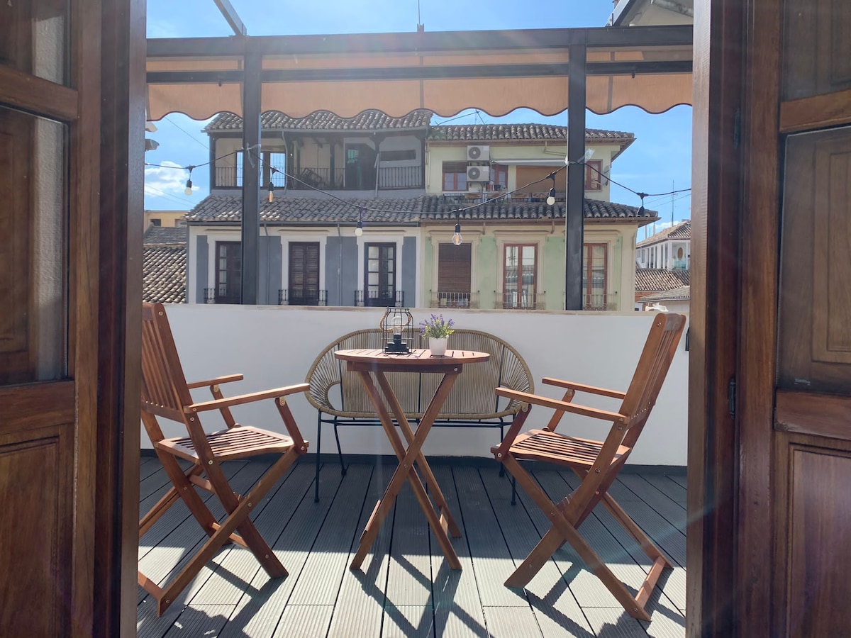 Admire the view of historic hillside homes from a private roof terrace. Doze in a hammock here at sunset. Play CDs from an impressive collection or cook in a kitchen with a view 2 terraces with amazing views of the beautiful Santo Domingo Church, Old Town and Sierra Nevada, where you can have your breakfast or chill after a long day exploring the city Located in a privileged area for exploring the city on foot (Alhambra, Cathedral, Albaicín, tapas bars) It's a 4th floor flat with no lift