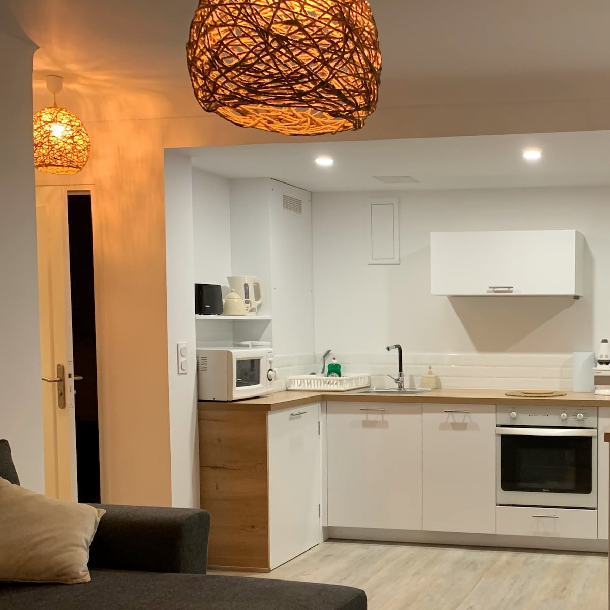 Magnificent accommodation new and cosy, idela for a couple or 3 people maximum in Argelès sur Mer. It is located in a quiet pine forest, 100m from the beach and shops, and close to all tourist activities! - Free Parking space (small garage) - Air conditioning - Terrace - Equipped kitchen - TV - Wifi - No stairs - Linen and consumables (coffee, tea, shower gel, laundry, dishwasher tablets) included. Relax in this quiet and modern accommodation.