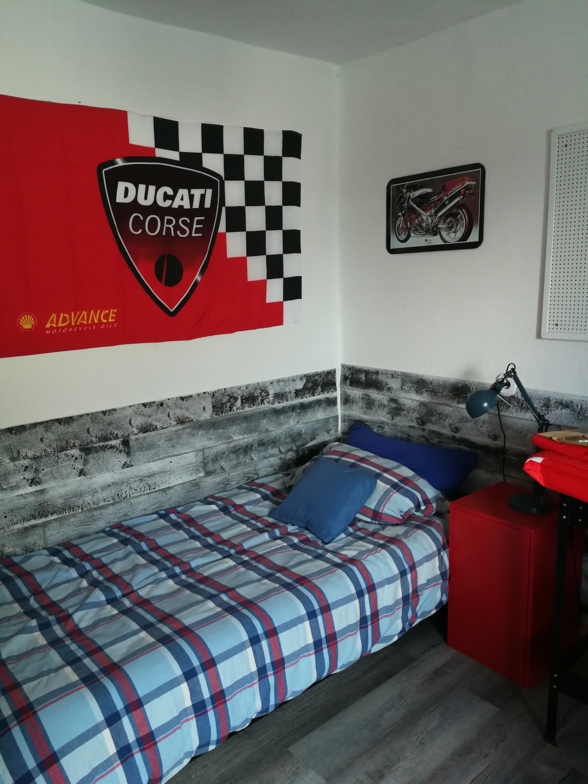 工作坊房間的佈置如其名。您可以找到智慧電視、WiFi,額外收費的早餐,房子後面有一個大露臺供房客使用。 開車前往紐堡林賽道需要5分鐘,步行則需要不到半小時 在房子後面的露臺上,綠意盎然。