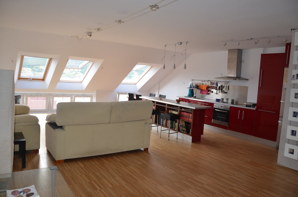 入住設備齊全的Loft ,配有實心橡木地板、混凝土牆、冷氣、白色大理石浴室、配有洗碗碟機和洗衣機的全套廚房。 包括寬敞的泊車位。 交通便利:開車8分鐘即可抵達市中心,開車2分鐘即可抵達高速公路。 在街尾,您有幾家超市、藥店、健身房、咖啡廳和許多綠地可供散步。
