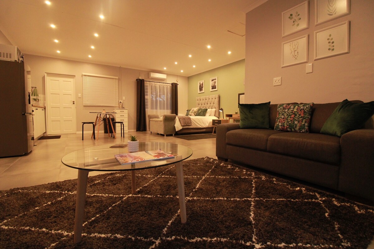 Escape the busyness in this calm, stylish and friendly space. Located in a quiet neighbourhood five minutes from the airport and nearby amenities, whether you're traveling for work or leisure, Clifton Home is the place for you. We offer your own private entrance, secure parking under a carport, wifi, TV with Netflix and Amazon Prime, a gas geyser and gas stove, quality bedding, air conditioners, and your own private garden with a braai.