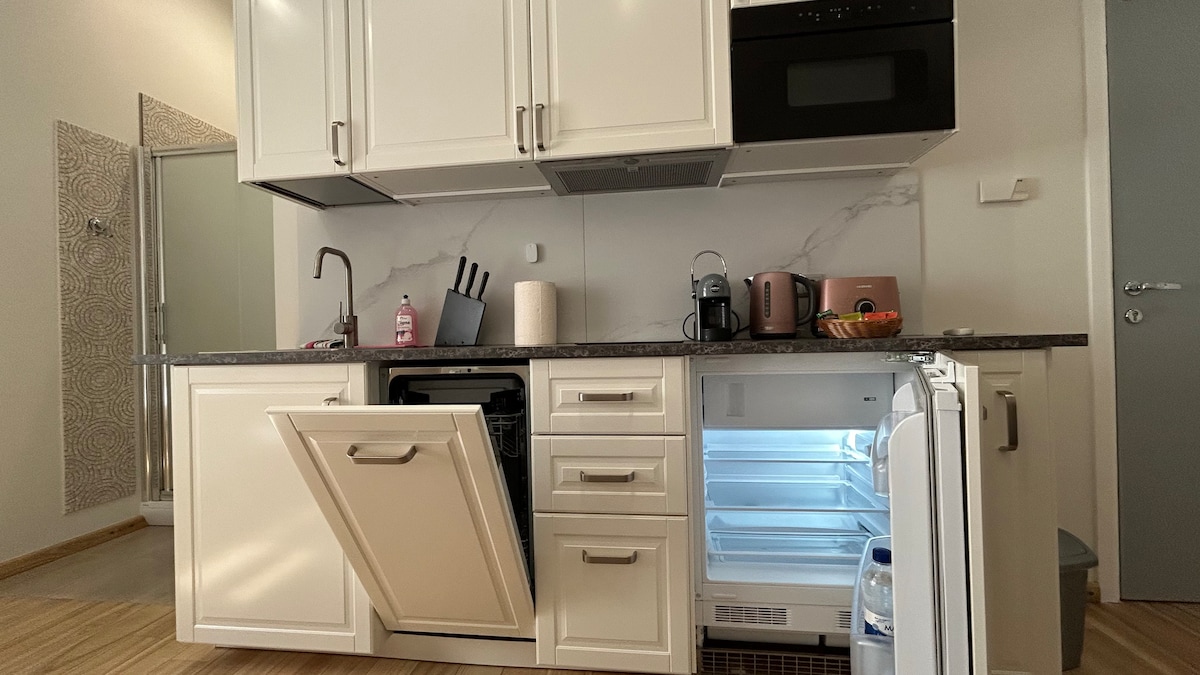 無論你是獨自探索里加,還是與好友一起探索,這間舒適且設備齊全的公寓都能滿足你的所有需求。 在27厘米厚的豪華床墊上享受寧靜的夜晚,配有大枕頭和獨立羽絨被,提供更舒適的體驗。 非常適合休閒和商務旅客。 位置方便,距離你需要的一切僅幾步之遙,包括樓上一家營業至深夜的雜貨店。
