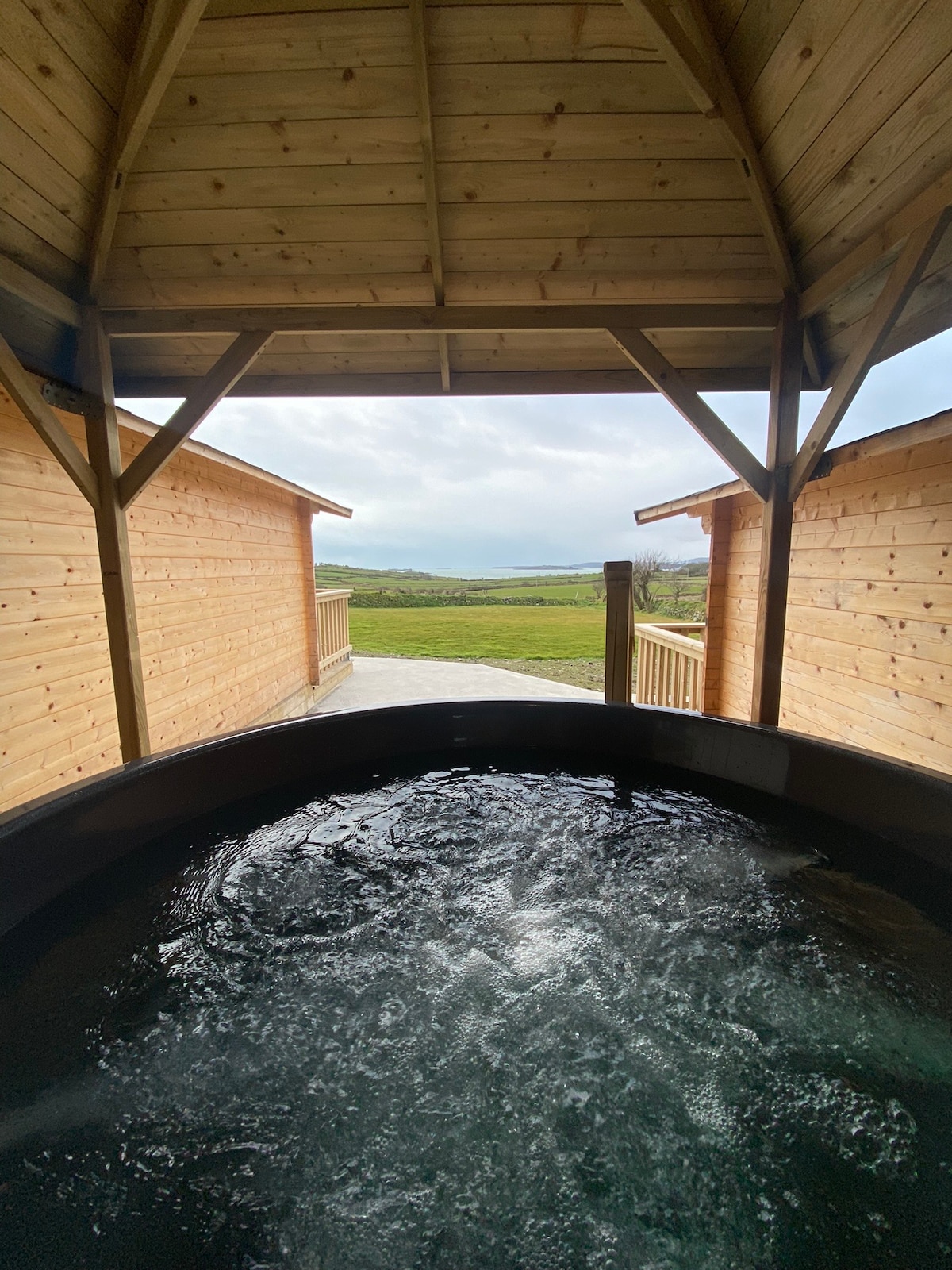 Escape to The Hidden Haven at Derry Duff; a unique, stylish, luxury farm-stay lodge, in a secluded corner of our organic West Cork hill farm, just 20 minutes from Bantry and Glengarriff. We designed this boutique, eco retreat to welcome guests to enjoy panoramic mountain views, the wild landscape, a lakeside hot tub, peace, calm and our organic produce. The Hidden Haven offers a romantic farm-stay experience with the space to reconnect, unwind, and rest surrounded by the quiet rhythm of nature.