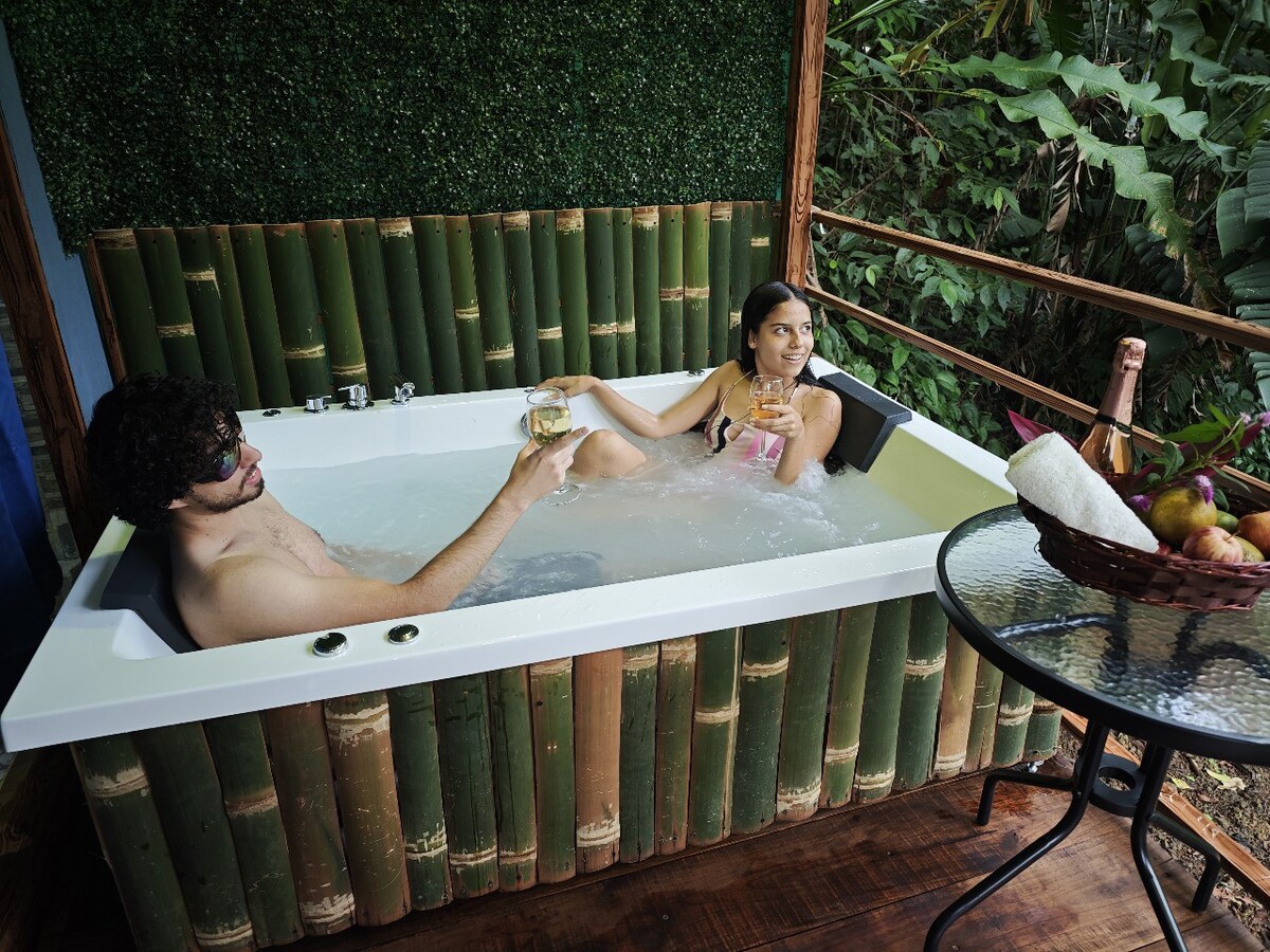 這是一個擺脫日常生活、與大自然連接的住宿,設計現代,裝飾溫馨,四周環繞著大自然,您可以觀賞許多鳥類,欣賞火山的美景,享受陽臺、露臺、清涼的游泳池和私人按摩浴缸。是情侶、朋友或遠距工作的理想場所。 位置優越,靠近所有主要活動地點,距離拉福圖納市中心僅 2.5 公里,距離拉福圖納瀑布僅 1 公里。