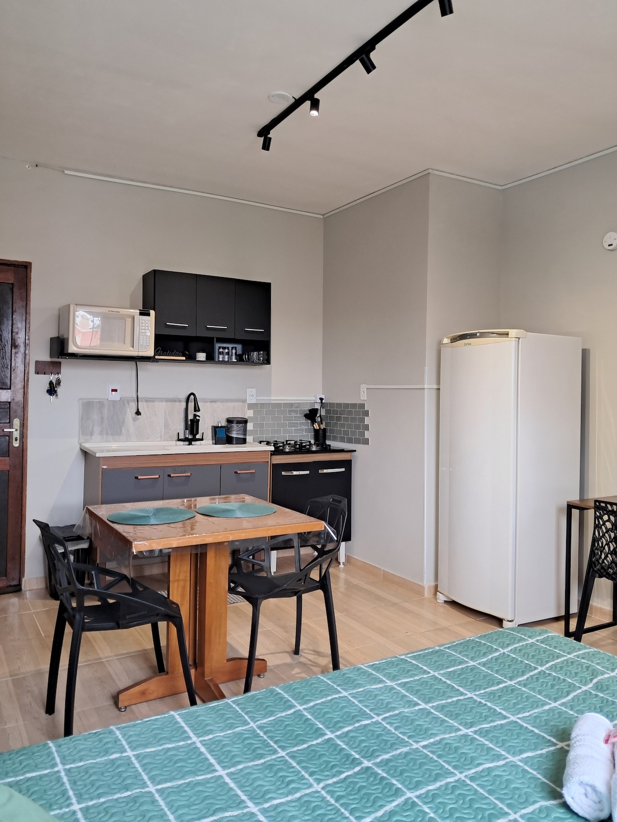 Estamos em um bairro bem tranquilo, residencial e arborizado, porém sem muitos comércios ao redor. O espaço tem outras kitnets, por isso, aglomerações e sons altos não são permitidos. O espaço foi preparado com muito carinho e espero que meus hóspedes tenham uma boa experiência e se sintam em casa. 5 minutos da Rodovia do Açúcar 15 minutos do centro 15 minutos da rodoviária 20 minutos da rua do Porto 20 minutos da ponte Pênsil 40 minutos do Thermas Water Park obs: distância de carro