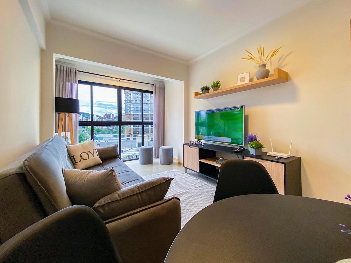 漂亮的單間公寓,有車庫,位於Blumenau市中心,靠近一切! 大樓有健身房和令人難以置信的屋頂泳池。 公寓完整且非常時尚。 雙人牀、牀單、被套、枕頭、枕頭、浴巾、浴巾、空調。 完整廚房,配有冰箱、微波和餐具,可供2人使用。 洗衣房配有洗衣機+烘乾機、熨鬥和熨衣。