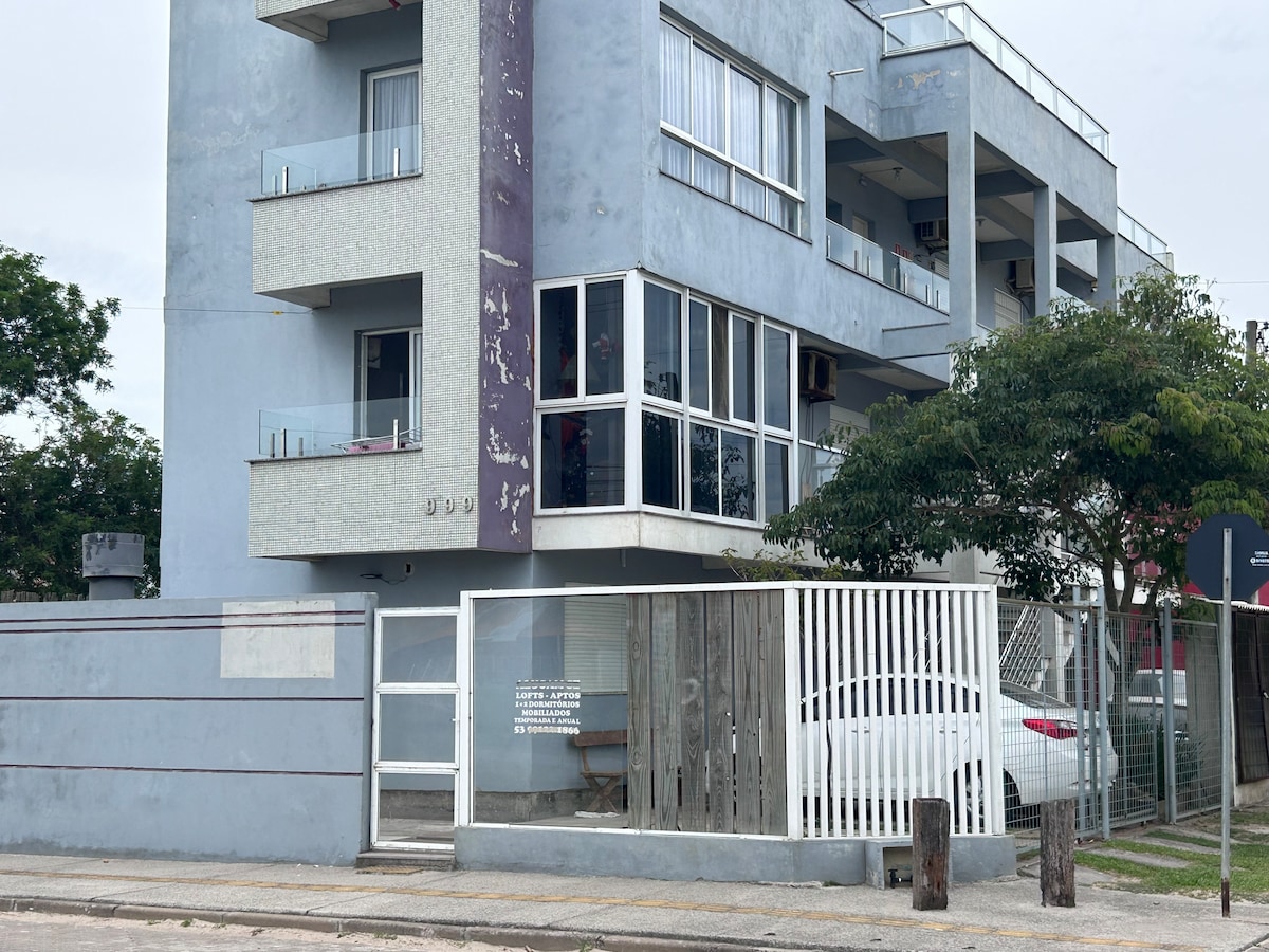 美麗的公寓,靠近FURG和新論壇。 鑰匙可以送到住宿以外的地址。 - 1張雙人牀和1張雙人沙發牀, -空調 1個停車位; -安靜; -規劃式廚房和中島; -週日早上; -城市和潟湖景觀; -帶泳池、派對室、燒烤和休閒區的公寓;