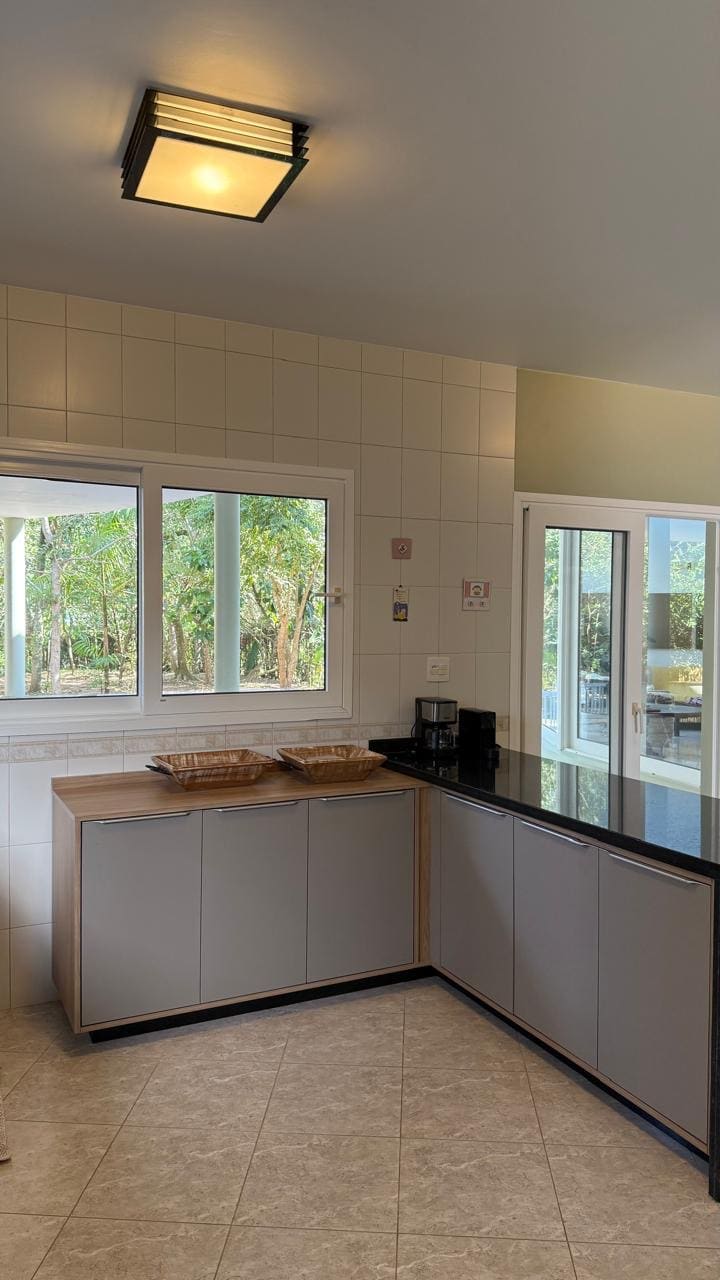 大西洋森林保護區的高端房源 💚 5間套房+適用於支付費用; 7間浴室+廁所女傭; Wi-Fi ; 主套房配有50英寸智慧電視、熱水浴缸和2個淋浴間; 美食空間,配有不銹鋼燒烤、Bacco盆地和啤酒廠; 配備60英寸智能電視的客廳; 帶無邊緣的泳池、海灘、甲板、太陽能供暖; 整合社交環境(中庭、客廳、餐廳、廚房、美食、泳池、水療中心) ; 車庫有4個大空間,其中2個有蓋。