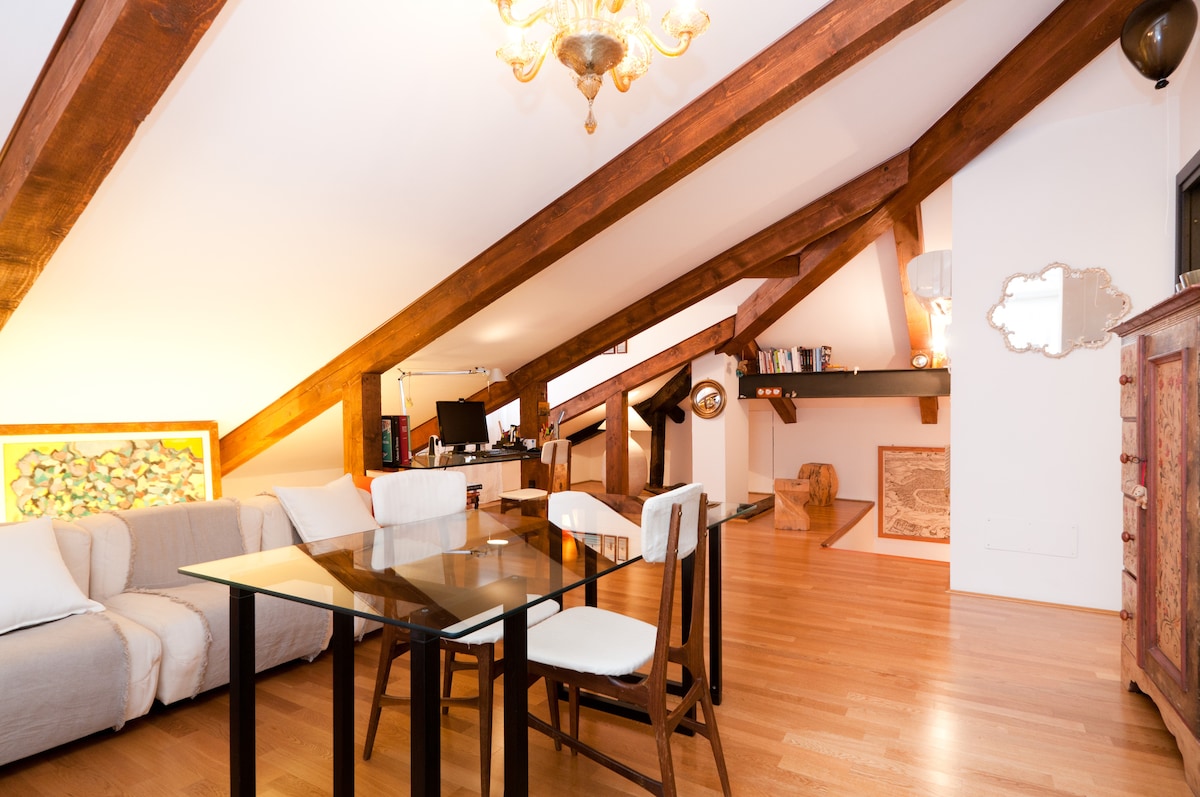 迷你閣樓位於一棟歷史建築的四樓和頂樓(有電梯),地理位置獨特且獨一無二,屋頂上有一個大型全景露台(陽台),配有私人使用的頭對頭桌子和日光浴躺椅,是威尼斯歷史中心難忘住宿的最佳選擇。 瀏覽照片,您會發現一個最新的威尼斯傳統活動和展覽日曆。分享我城市最好的一面是一項艱鉅的任務 🥰