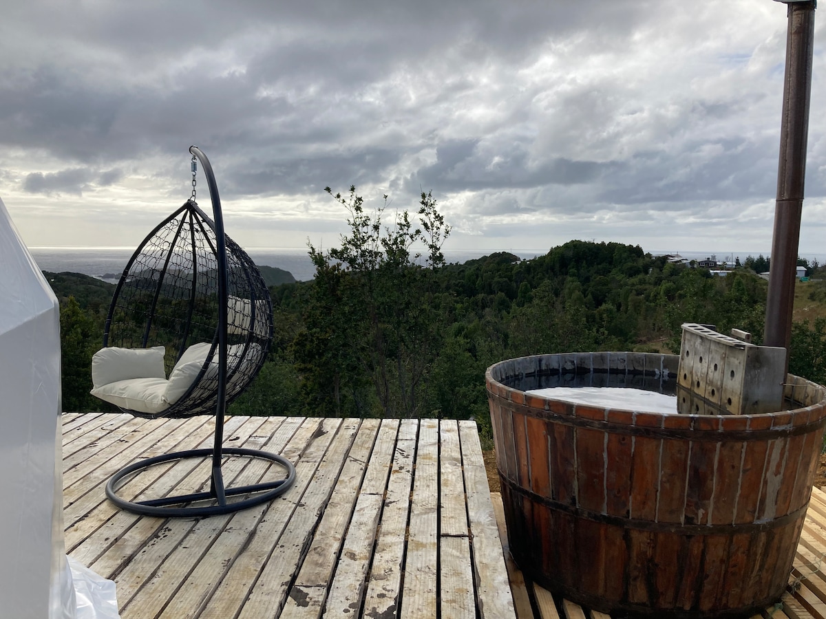 鄉村小屋,可容納2至4人,距離安庫德22公里。它位於懸崖邊緣,可欣賞太平洋的壯麗景色。從小屋出發,您可以開始自己的海灘冒險,步行10分鐘即可抵達中等難度的海灘,從露臺上可以欣賞美麗的日落,在雨天則可以享受溫暖的南方篝火。