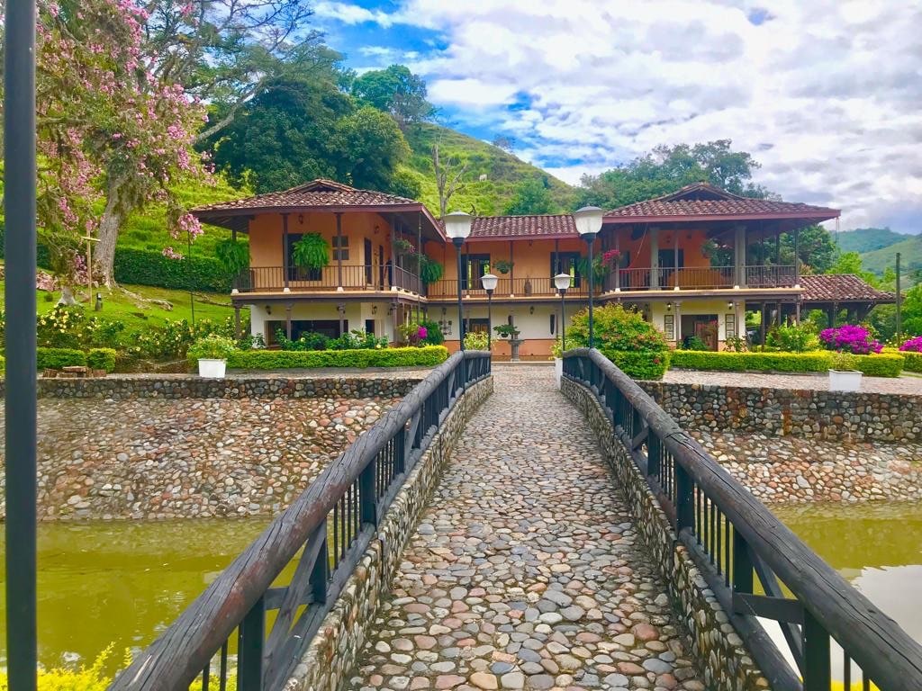 綠色山脈、牛、鳥和蝴蝶在咖啡文化景觀的中間。Las Palmeras莊園提供這些和更多。其殖民地建築和舒適的房間使這個旅居成為遠離城市、交通和日常職業幾天休息的完美地方。它距離La Virginia 10分鐘,那裏有超市、餐廳等。 距離旅遊城鎮阿皮亞(Apia)和聖圖阿里奧(Santuario)25分鐘路程。