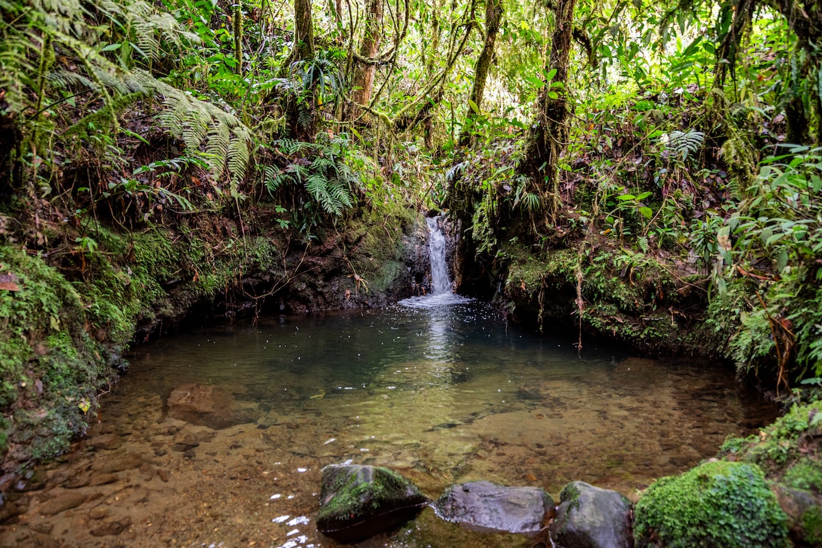 Cabaña aislada en lo alto de la montaña, rodeada de bosque nativo y con vista abierta al cañón. Niebla al amanecer, silencio real y sonido constante del agua. A solo 1 hora de Manizales, es ideal tanto para escapadas cortas como estancias largas. Descanso profundo, lectura o escritura, senderos por recorrer y cascadas para descubrir. Un alojamiento único a 3 km del nido de una pareja de cóndores. Naturaleza, aislamiento y vistas amplias de bosque andino para desconectar y volver a lo esencial.