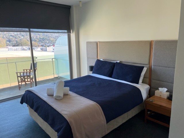 Located on the quiet side of the complex (within two blocks of the CBD), our single level apartment (lift access & free secure car park) includes 3 large bedrooms, open plan fully equipped kitchen/dining area, two bathrooms, laundry and balconies with views towards the Cataract Gorge. The complex also features an on-site gourmet restaurant (room service & coffee) & gym. Perfect for groups of up to six people to explore everything Launceston has to offer. Free unlimited WI-FI and 65" Smart TV.