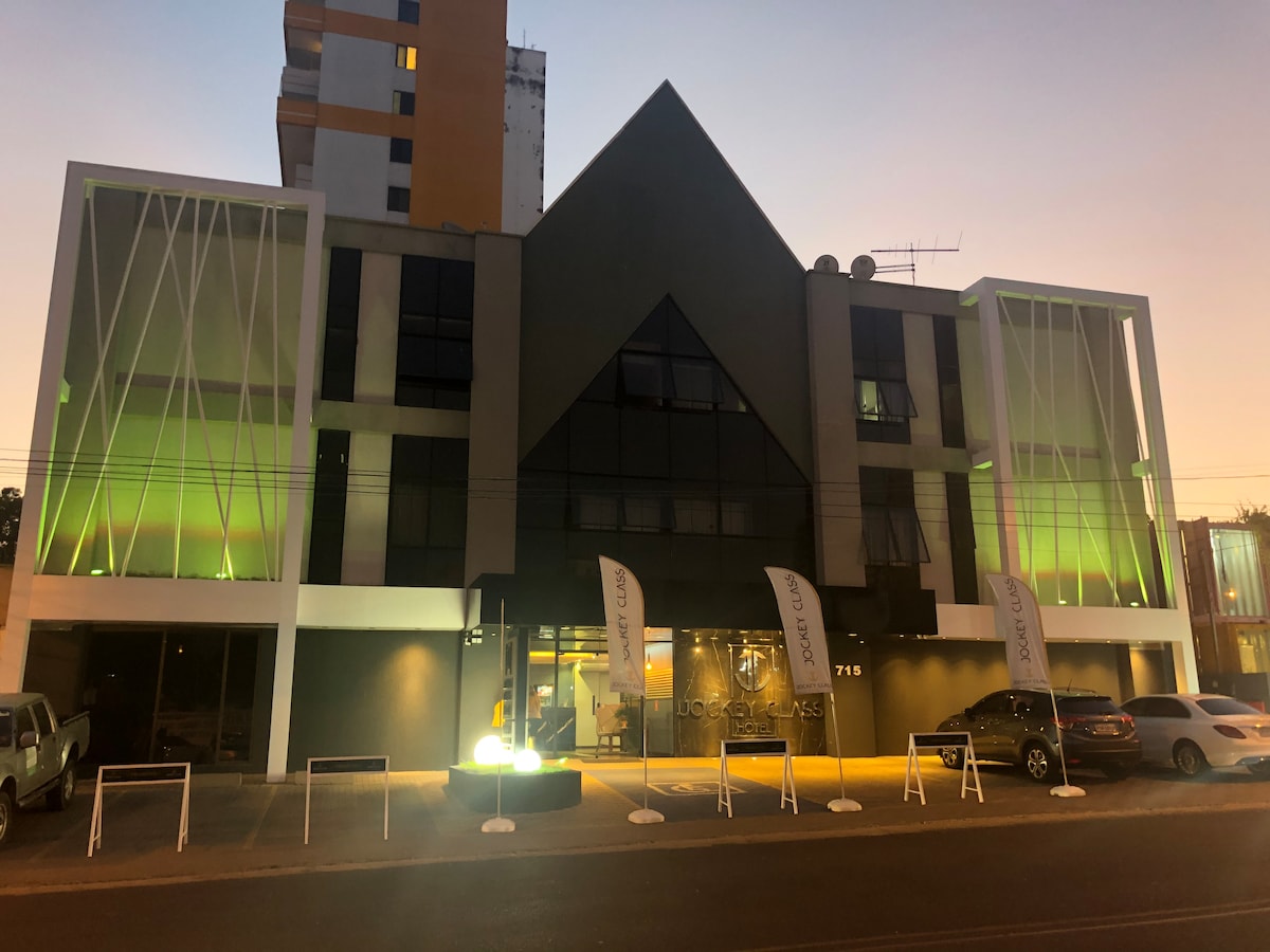 FLAT ESTILOSO E MODERNO no Hotel Executive Arrey. Aproveite de um espaço exclusivo com diversos serviços de hóspede incluídos na diária, como limpeza/camareira, serviço de quarto, espaço fitness, estacionamento privativo, wireless gratuito, piscina, sauna e american bar. Além do wi-fi do hotel, temos uma rede exclusiva de 500 mega, contas premium Netflix, Prime Video e uma estação de trabalho!