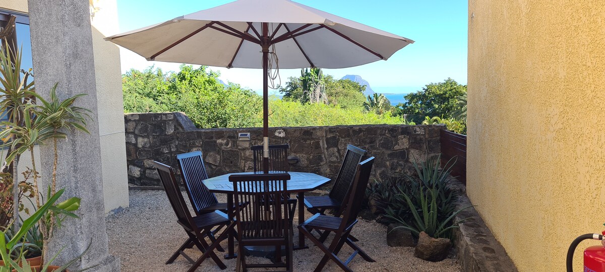 這間迷人的雙層公寓坐落在山腳下,可欣賞「Le Morne山」、「Ile aux Benitiers」和西海岸潟湖的迷人景色。 「Le Morne」的輕鬆和鼓舞人心的景色,從1間臥室欣賞田園詩般的印度海洋日落,欣賞海景和泳池,從第二間臥室欣賞海景和泳池 設備齊全的空調房、吊扇、WiFi (光纖)、電視、1個停車位和牀單 通道共用遊泳池和景觀小院子 情況-靠近設備與服務-海灘、餐廳和商店。