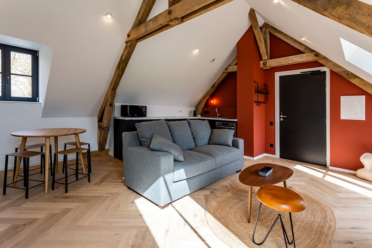 距離裏爾約15分鐘,祝您在我們的50平方公尺公寓住宿愉快,可免費使用泳池至晚上8點(星期六晚上9: 30 ) 額外的私人按摩浴缸/蒸汽房和按摩(價格請與我們聯絡)