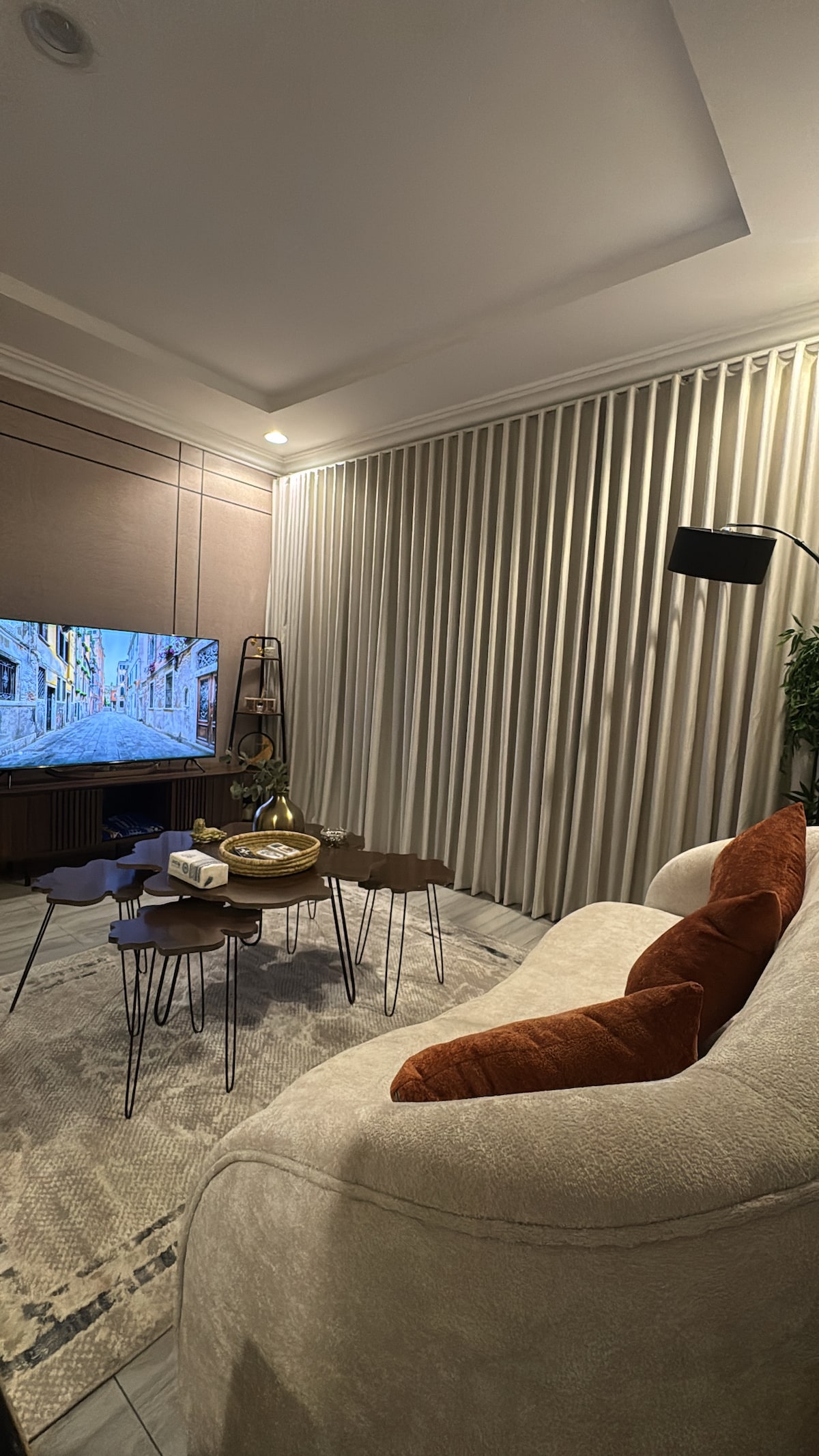 شقة بصالة انيقة،ودخول ذاتي،تلفزيون75بوصة QLED 4K