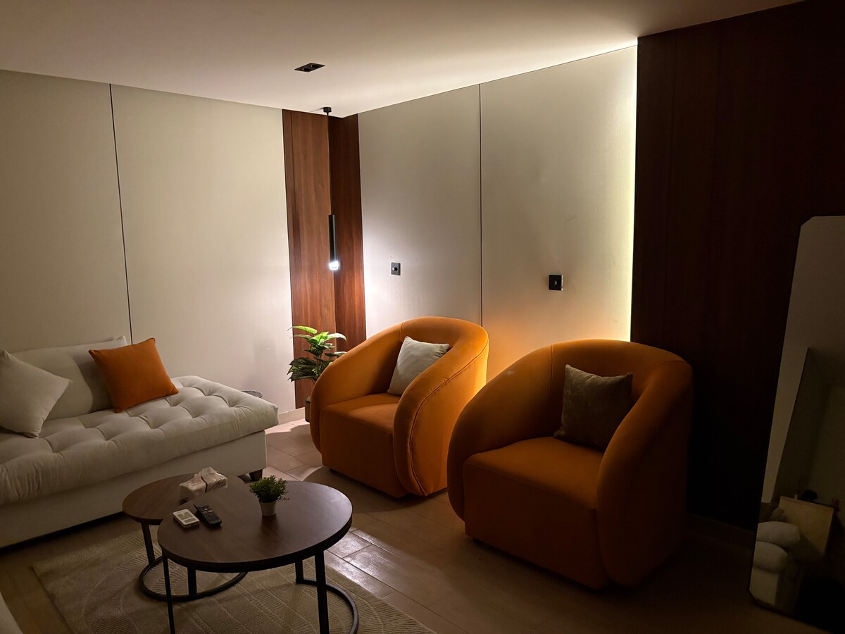 這是一間豪華公寓,設計現代優雅,兼具舒適和時尚。 它設有寬敞的臥室,配有高級床和柔軟的床單、舒適的起居區、大螢幕、設備齊全的咖啡吧和配有高品質設施的時尚浴室。 位於北利雅德:距離 KAFD 10 分鐘、距離阿卜杜勒阿齊茲國王地鐵站 5 分鐘,距離利雅德季節 20 分鐘。 單位提供快速WiFi、現代化空調和免費水、咖啡和茶。