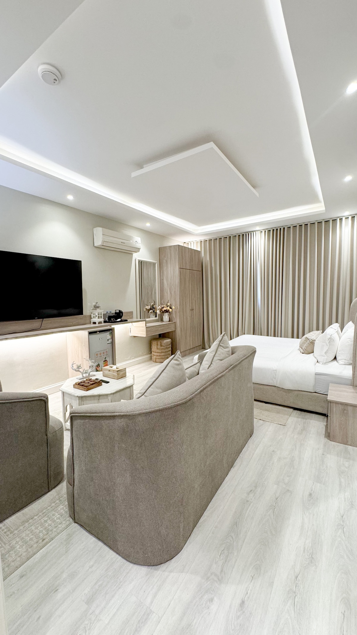 在北利雅得的中心地帶,享受優雅而寧靜的住宿體驗。我們的住宅單位地理位置優越,距離金融中心僅 10 分鐘路程,距離北環路僅幾步之遙,方便前往所有重要目的地。該單位為您提供一系列獨特的酒店服務,讓您享受精緻的體驗,包括: ✔ 柴茶 ✔ 水上活動 ✔ 咖啡 ✔ 提供生活百貨和洗衣服務,而且鄰近最重要的娛樂景點 距離Sinomall僅3分鐘 距離利雅得公園10分鐘 對於那些尋求奢華、舒適和靠近一切的地點的人來說,這是完美的住宿