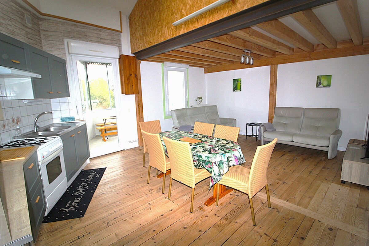 舒適翻新的45平方米公寓,位於一個小型安全公寓的二樓,沒有電梯。 靠近市中心和所有設施:餐廳、酒吧、超市步行兩分鐘 🛏️ 公寓空間 -配備雙人牀和單人牀的臥室 -設備齊全的廚房(爐具、烤箱、冰箱、咖啡機...) -客廳配備Wi-Fi和電視,讓您放鬆身心 -浴室配有淋浴間和獨立馬桶 -在街上輕鬆免費