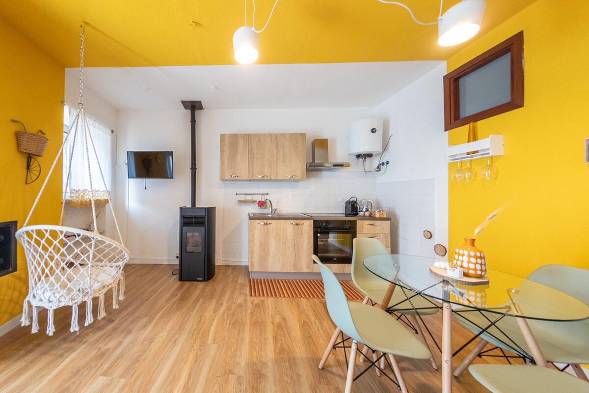 房源是大型小屋的一部分,有幾個旅遊單位。 我們的每個住宿都有獨立通道和客廳/廚房,配有壁爐和有蓋露臺供獨家使用。 這是一個公共區域,只有大花園,您可以在那裡享受樹林中橡樹的新鮮感,或沿著您可以從石廠抵達的自然小徑上沿著河畔漫步。 允許寵物入住,需額外收取清潔費。