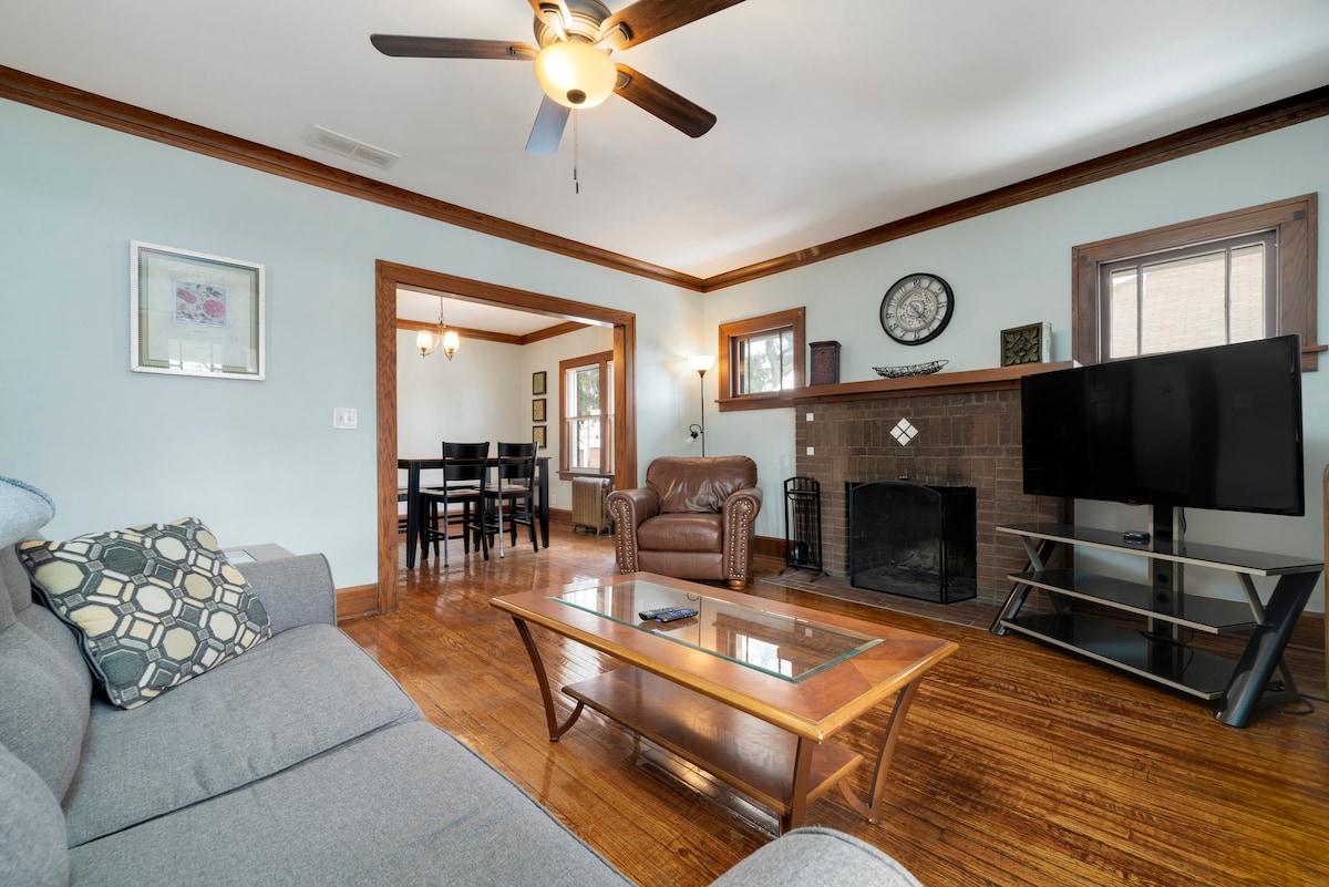 三間臥室磚房,配有壁爐和戶外空間,位於沿著跑步者/自行車手最喜愛的路線的街區。 距離安德森花園(Anderson Gardens)、UW Sports Factory、科羅納多劇院(Coronado Theater)和市中心活動3-6分鐘。靠近所有醫院,開車前往兩個Sportscores都很方便。 二樓臥室配有梳妝台和衣櫃。兩間臥室可欣賞河景。廚房備品充足,方便準備餐點。舒適的後院有磚頭露臺、烤架和桌子。週租/月租折扣。