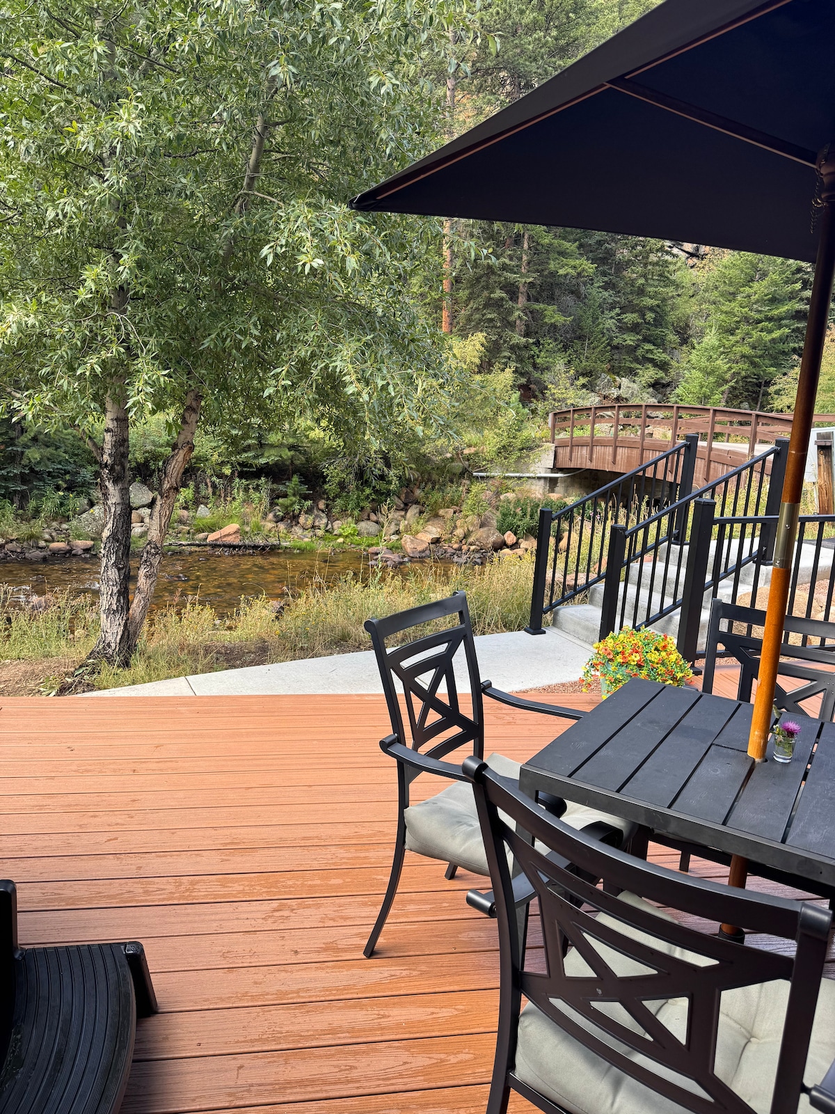 完全翻新!舒適的山間2房2浴室公寓,坐落在羅斯福國家森林內,距離咆哮的瀑布河僅幾步之遙。 私人露台俯瞰一切,景色最迷人。 在這裏享用早晨咖啡,欣賞野生動物,或在按摩浴池中享用晚間葡萄酒。 這一切都能撫慰靈魂! 室內有一種甜美的現代/復古氛圍,包括一些有趣的折中主義定制壁畫。 最重要的是,它距離RMNP入口和Estes市中心只有幾分鐘路程。Wi-Fi